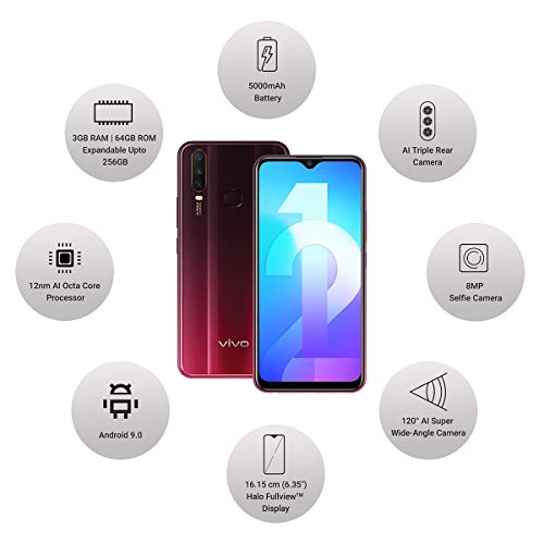 Vivo Y12 (Burgundy Red, 3GB RAM, 64GB Storage) Without Offer
