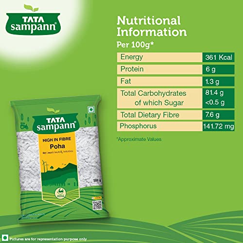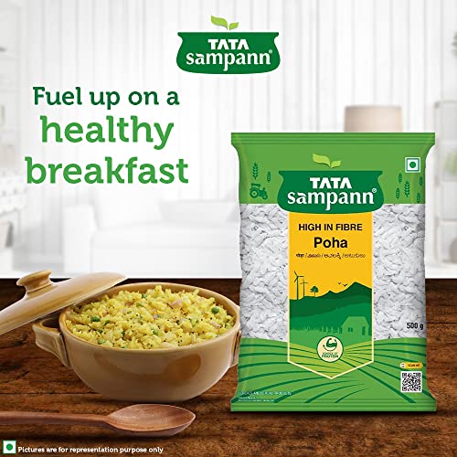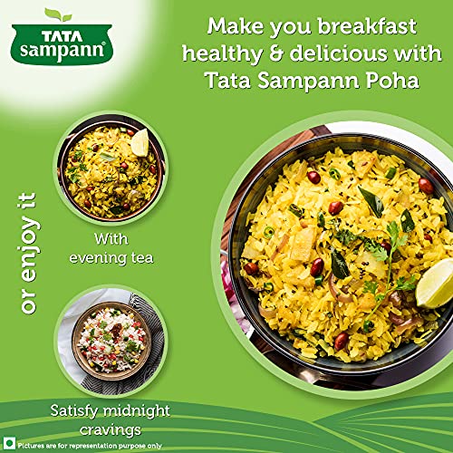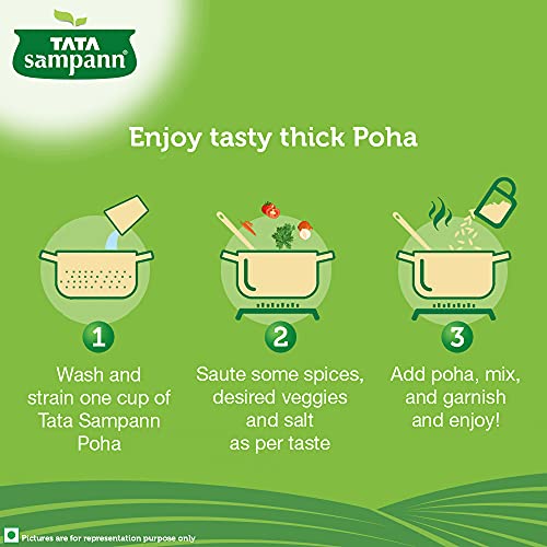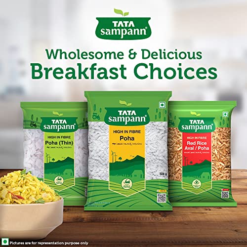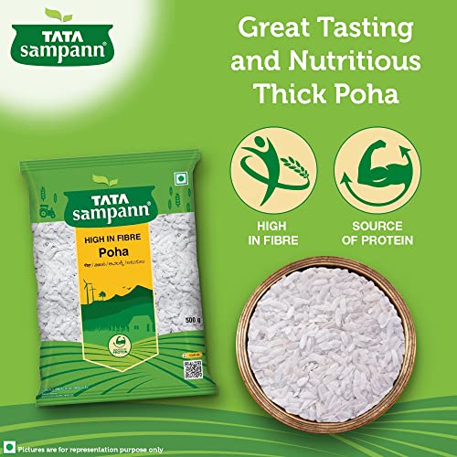 Poha, also called flattened/ beaten rice, is a much loved and eaten snack in India. With a dash of peanuts and curry leaves, it makes for a breakfast enjoyed by everyone. Tata Sampann thick poha can be used to make a healthy snack as it uses minimal oil while roasting and is high in fibre which is an essential part of a healthy and balanced diet. The thick poha packed with its wholesome goodness intact is also a natural source of protein which is an important building block for the body. Tata Sampann thick poha can be used to prepare great-tasting and nutritious breakfast for a delightful day. Poha can be enjoyed in breakfast, with evening tea, for a light dinner or to satisfy midnight cravings. Just open a pack and make your favourite recipe. Storage: transfer content to an airtight container after opening. Store in a cool and dry place. Do not purchase if the pack is open or tampered or punctured.