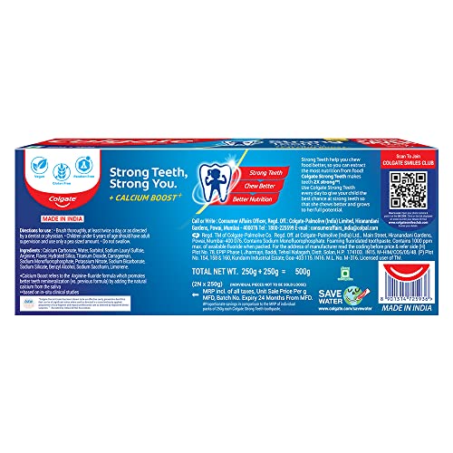 Paste hi Nahi, Daanto Ka Poshan! Our teeth lose calcium every day as we eat sugary or Junk foods and weaken over time. Colgate Strong Teeth has a unique Calcium Boost + Arginine formula which restores natural calcium back to your teeth and nourishes them. Resulting in 2X stronger teeth vs usage of regular fluoride toothpaste. Colgate Strong Teeth toothpaste also helps prevent cavities, whitens teeth and freshens breath with regular use. This toothpaste is safe to use on kids and adults. Can be used by Men, women and children. Colgate is India’s most trusted oral care brand. As a trusted partner, we are committed to doing business with integrity and respect for all people and the world around you. Colgate offers quality oral care products, including toothpastes, toothbrushes and mouthwashes as well as expert dental health information. This toothpaste is 100% vegan and gluten-free. For a better experience try with Colgate Gentle Enamel Toothbrush.