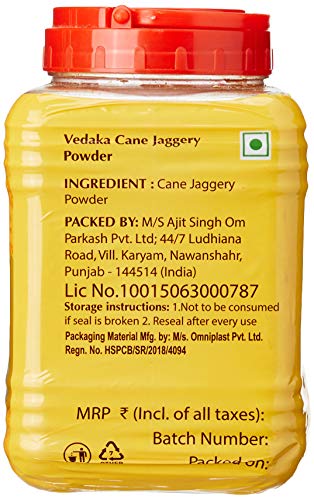 Vedaka brings to you this 1kg jar of premium-quality jaggery powder, which can be used a substitute for your daily needs of sugar and honey. It is free from any kind of adulteration and added flavours. Vedaka jaggery powder offers a shelf life of 12 months. It is packaged in a jar, which makes it easy for use and storage. It adds a unique flavour to your food. Use this jaggery powder to prepare desserts for your family or use it in your everyday cooking.