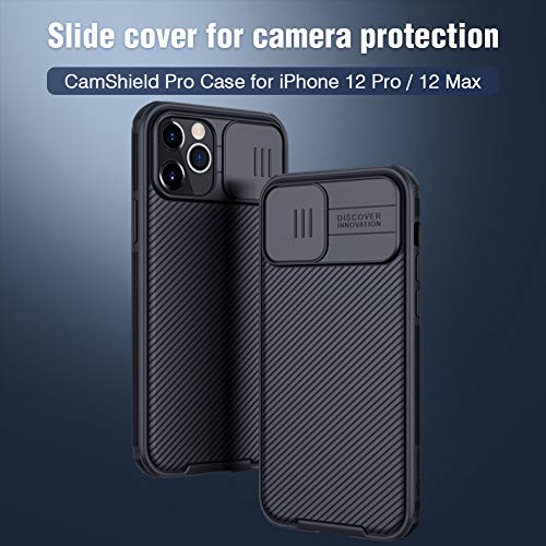 Nillkin for iPhone 12 Pro Max Case with Camera Cover, Lens Protection, CamShield Pro Shockproof Protective Bumper Hard PC Back and Soft Silicone Edge for iPhone 12 Pro Max 6.7 inch Black