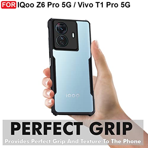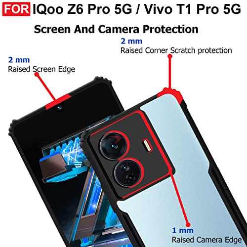 CEDO iQOO Z6 Pro (5G) / Vivo T1 Pro (5G) Cover | Camera Protection Shockproof Bumper-Edge | Acrylic Crystal Clear 360 Degree Protection TPU+PC | Transparent Eagle Back Case Cover (Black)