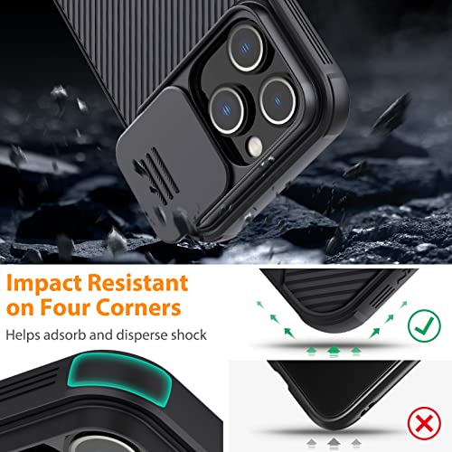 MilitaryGrade-Level-Leve- The iPhone 14 Pro case is made of environmentally friendly TPU and PC material. Provide your device reliable protection.has passed 4500+ professional drop tests and no damage from 6Ft drop fall. The four built-in corner shockproof Airbags can effectively absorb all drop impacts.Anti-fingerprint, upgraded impact-resistant bumpers, Impact resistant corners.