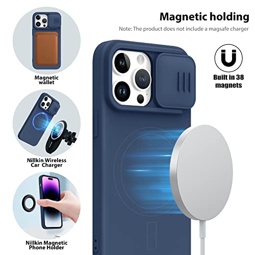 Nillkin iPhone 14 Pro Max Silicone Magnetic Case, Liquid silicone Case with Slide Camera Cover, Blue.