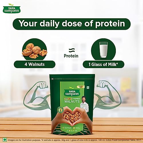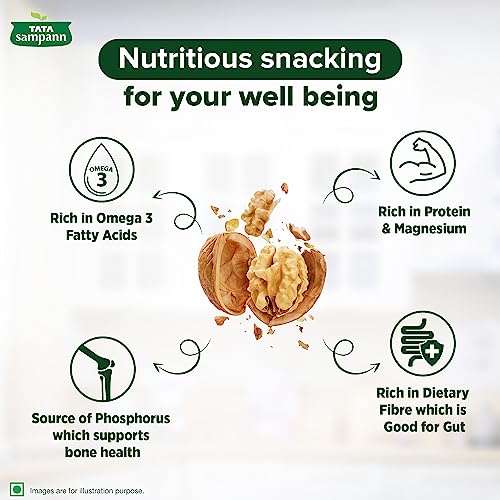 Packed with the goodness of protein, magnesium, phosphorus, and dietary fibre, Tata Sampann walnuts