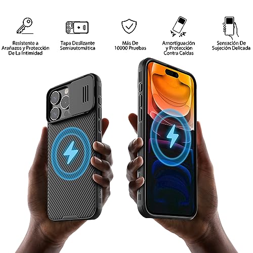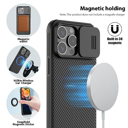 Nillkin for iPhone 15 Pro Max Magnetic Case with Camera Cover, Compatible with MagSafe, CamShield Pro Magnetic 15 Pro Max 5G Car Mount Case 6.7’’, Built-in Magnet Circle, Black