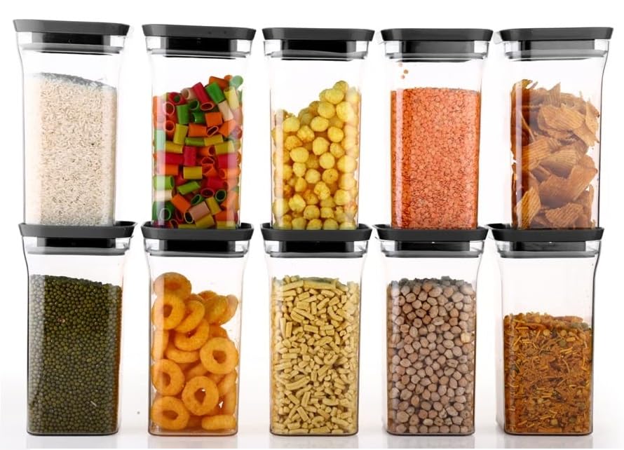 These Durable containers have been specially designed to MINIMIZE SPACE and will easily fit into your refrigerator, freezer or cupboard which enables you to get the kitchen organized and frees up space in the pantry. You can store crafts, office supplies, and toys for kids, baby products and more to fit a variety of home storage and organization needs. Recommended as pulses, cereals, tea coffee, dry fruits containers, sugar storage containers